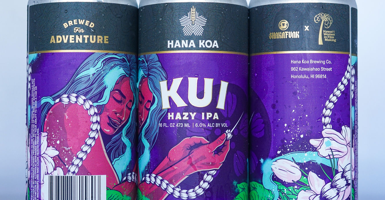 KUI is a Hazy IPA born from the intersection of Hawaiian art and the power of wāhine storytelling. Brewed in collaboration with Shakafunk — the West Oʻahu-born creative design studio dedicated to representing Hawaiʻi culture in the marketplace — and crafted to benefit Hawaiʻi Women in Filmmaking, a Honolulu-based 501(c)(3) non-profit empowering the next generation of Hawaiian women filmmakers.